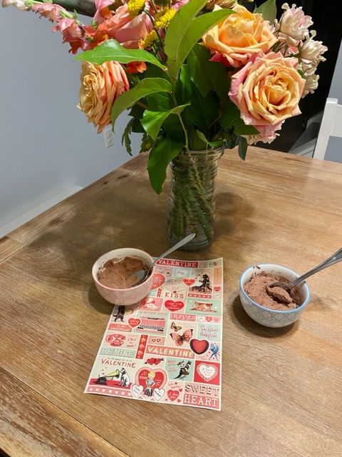 Last Tuesday was Valentine’s Day! Terry and I had a quiet evening at home with Frank Sinatra, and Michael Bublé serenading us in the background. I seared a ribeye steak, made twice-baked potatoes and salad with fennel and blood oranges. We finished putting together a Valentine-themed puzzle while savoring chocolate mousse. Flowers from my favorite florist and an exchange of cards helped make the evening perfect for our first Valentine’s Day as empty nesters.