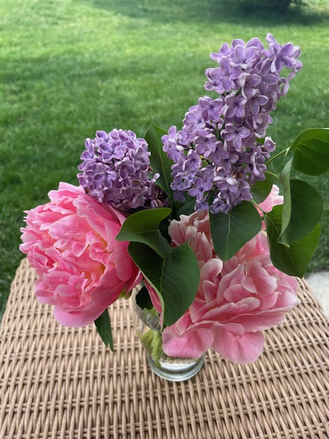 My friend Michele sent me another suggestion for the title, the word “Reclaimed”. I looked up the definition of that word along with restored, and although the words are often used synonymously, they have different meanings and applications. I felt my book was both, and that’s when the title hit me. Reclaimed & Restored will be released in October of this year. God reclaimed my life from fourteen years of sexual abuse and has lovingly led me on a thirty-five-years-and-counting restoration journey. After settling on that title, both my lilacs and peonies bloomed together. I can place the lilac blooms from my broken branch into the same vase as the peonies to create a beautiful centerpiece on my table; a centerpiece that integrates my past and present into something beautiful.