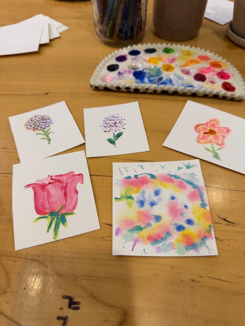 We then went to an art studio called This is Happiness. Emily Keener, the artist and studio owner, not only displays her cheerful artwork and intricate pottery, but she also has a table open with ceramic palettes filled with paint. With small squares of paper, you can take a few minutes and let your inner artist out to play, painting whatever comes into your imagination. Inspired, Terry spent some time talking to Emily, finding out what materials he needed to start painting. We both left feeling like we had found a new favorite place.
