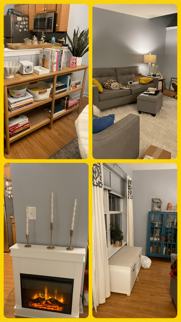My sweet daughter arrived, venti coffee in hand, offering to help me unpack. I started to cry, feeling overwhelmed. She spoke calmly to me and started to inspect my new cupboards. She shifted things around and stacked things on top of each other and spoke firmly, “Mom, you have enough space, you just need to stack things.” Those simple words snapped me back to reality and propelled me forward. Quickly, I found ways to fit my kitchen items into my much smaller space. I even started to get a vision of what we wanted the home to look like and found a shaggy white rug to warm up the living room, along with the perfect little electric fireplace to anchor the space. With a limited budget, we found a bench on Facebook Marketplace to put our shoes in when leaving, keeping the rug pristine. We also found a round dining room table to fit our space, until we can afford the one we want.